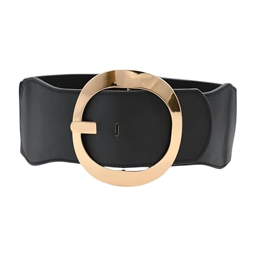 Generic - حزام جلد صناعي عريض ومرن - حزام مركزي عصري للنساء مع مشبك معدني ذهبي