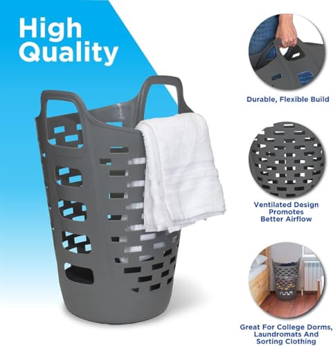 - سلة غسيل مرنة بفتحات تهوية - مثالية لفرز الغسيل المتسخ والملابس النظيفة. سلة غسيل قائمة بذاتها تعزز تدفق الهواء بتصميم جيد التهوية. يبلغ مقاس سلة الغسيل الفردية 16.5 × 18.8 × 25.5 انش.