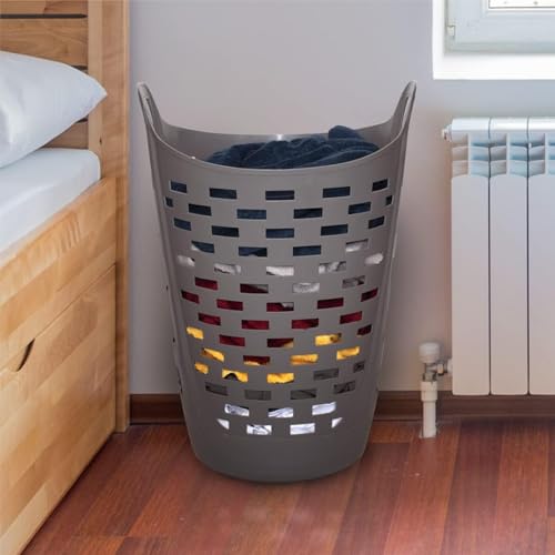 Generic - سلة غسيل مرنة - سلة بلاستيكية طويلة للملابس وغرفة النوم والتخزين - دائرية محمولة بمقابض حمل، رمادي