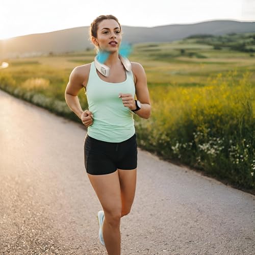 Generic - مروحة رقبة مرنة - مروحة رذاذ بارد هادئة ومحمولة مع 3 أزرار تحكم في السرعة، حزام رقبة مريح وقابل للانحناء، تشغيل مستمر لمدة 6 ساعات، مثالية للرياضة أو السفر أو الاستخدام المنزلي