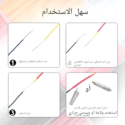 - استخدام أنبوب الانكماش الحراري هذا سهل وبسيط؛ ببساطة قم بقص الأنبوب إلى الطول المطلوب باستخدام المقص أو السكين الحاد. حافظ على مسافة لا تقل عن 1.2 سم عند استخدام المسدس الحراري لتقليص الأنبوب لتجنب ظهور العلامات السوداء. كن حذرًا ولا تلمس الأنابيب حتى تبرد تمامًا بعد الاستخدام، لضمان التعامل الآمن معها طوال فترة استخدامها.