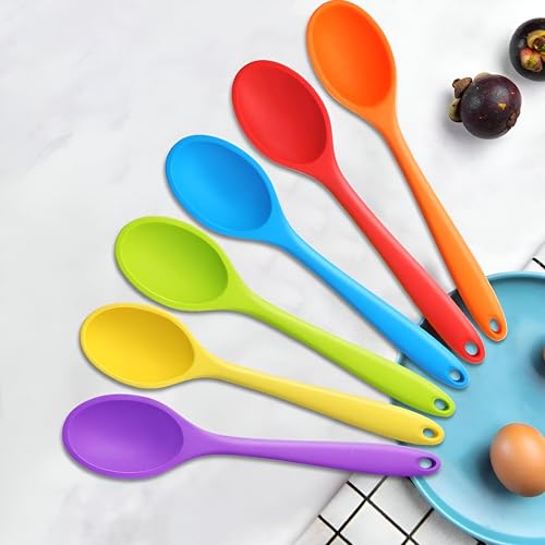 Generic - ملعقة خلط سيليكون مرنة للطبخ والخبز والتقديم - مصنوعة من مواد صحية ومقاومة للحرارة حتى 450 درجة فهرنهايت، تلبي جميع احتياجات مطبخك (6 ملاعق)
