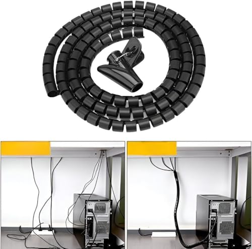 Generic - غطاء إدارة الكابلات الحلزوني المرن - بطول 2 متر، مثالي لتنظيم وحماية الكابلات الخاصة بك، مصنوع من البولي إيثيلين المتين، يمكن قطعه بسهولة إلى الطول المطلوب، مثالي للاستخدام المنزلي والمكتبي