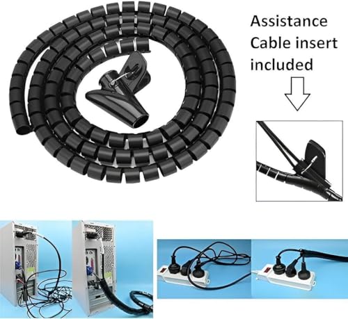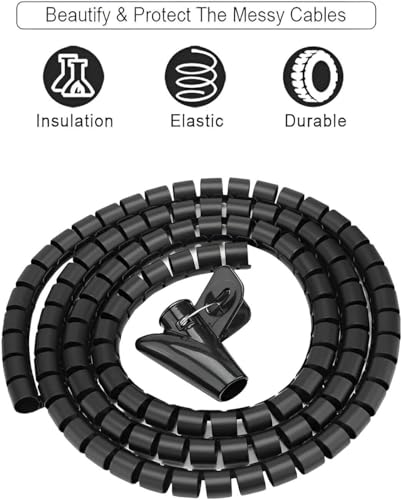 Generic - غطاء مرن لإدارة الكابلات الحلزونية بطول 2 متر - مثالي لتنظيم وحماية الكابلات، مصنوع من البولي إيثيلين المتين، سريع القطع إلى الطول المطلوب، مثالي للاستخدام المنزلي والمكتبي، يحافظ على الأسلاك مرتبة