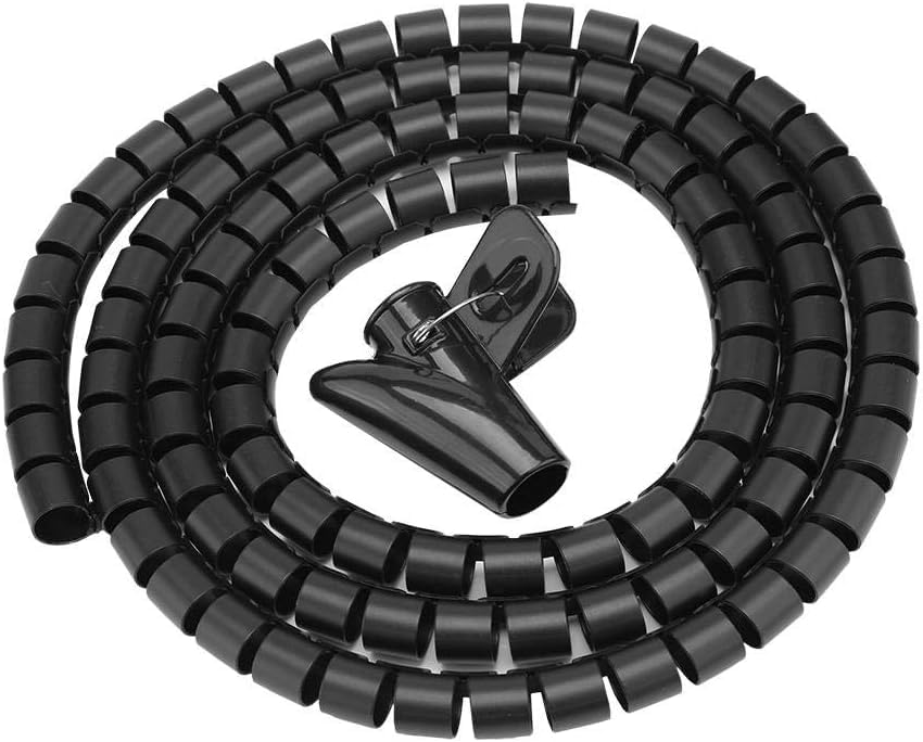 Generic - منظم كابلات حلزوني مرن للأجهزة والمكتب والتلفزيون والكمبيوتر - أنبوب حماية سلك سيليكون اسود 16 ملم مع مشبك لتنظيم الكابلات والحماية في المنزل او المكتب، 2 م