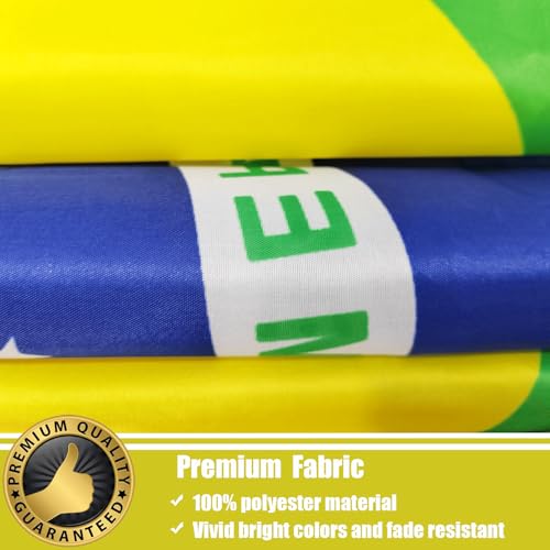 - حرفية فائقة -- أعلام البرازيل 3 × 5 مخيطة بشكل مزدوج حول الحافة ومعززة برأس من القماش وحلقتين نحاسيتين. حلقات معدنية نحاسية سميكة تضمن تعليق اللافتة البرازيلية لفترة طويلة لأطول فترة ممكنة