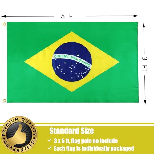 - ألوان نابضة بالحياة -- علم البرازيل الوطني قياسي 3 × 5 أقدام. ألوان العلم البرازيلي في الهواء الطلق حادة ومشرقة ونابضة بالحياة ومقاومة للأشعة فوق البنفسجية. ستبقى الألوان حقيقية لفترة طويلة