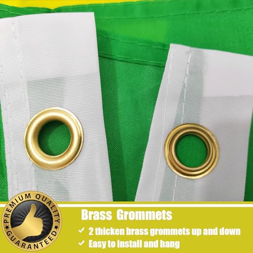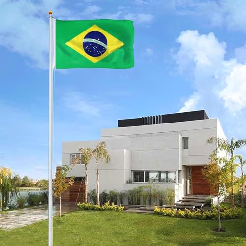 FLGCLUB - علم البرازيل من اف ال جي كلوب 3 × 5 قدم للاستخدام الخارجي، اعلام البرازيل مقاومة للبهتان بالوان نابضة بالحياة من البوليستر بخياطة مزدوجة، راس من القماش وعلم البرازيل الوطني البرازيلي وحلقات نحاسية