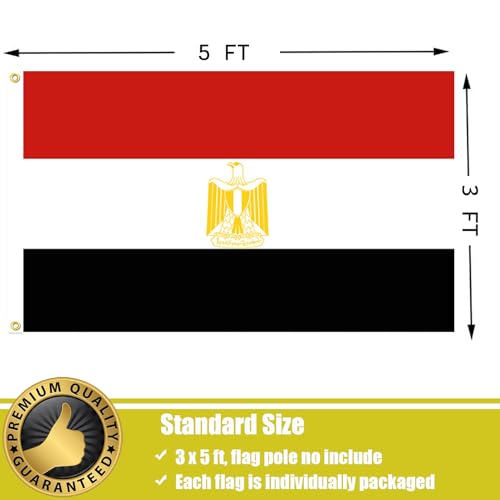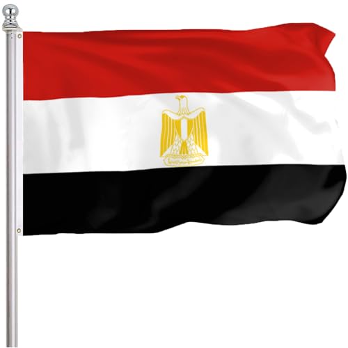 - ألوان نابضة بالحياة -- علم مصر الوطني قياسي 3 × 5 قدم، ألوان العلم المصري في الهواء الطلق حادة ومشرقة ونابضة بالحياة ومقاومة للأشعة فوق البنفسجية. ستبقى الألوان حقيقية لفترة طويلة