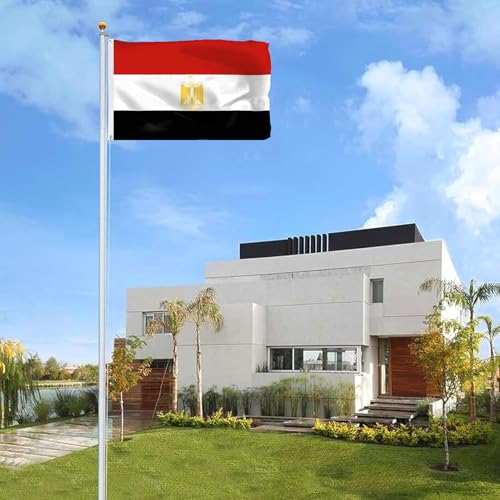 FLGCLUB - علم مصر من اف ال جي كلوب 3 × 5 قدم للاستخدام الخارجي، اعلام مصر مقاومة للبهتان بالوان نابضة بالحياة من البوليستر بخياطة مزدوجة، راس قماش العلم الوطني المصري وحلقات نحاسية