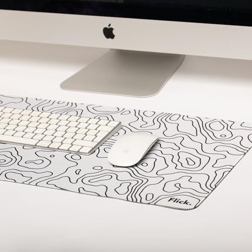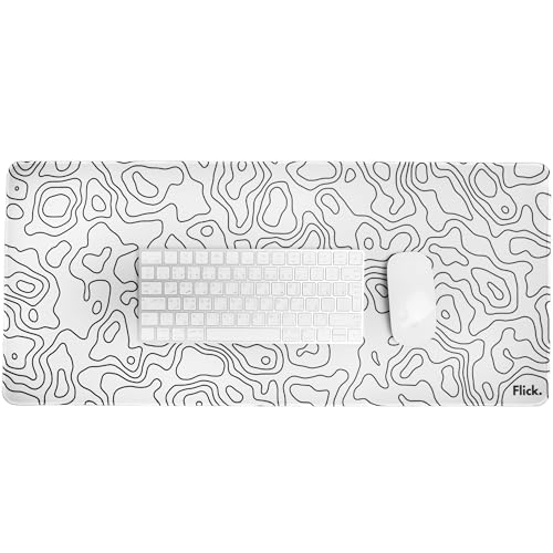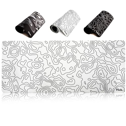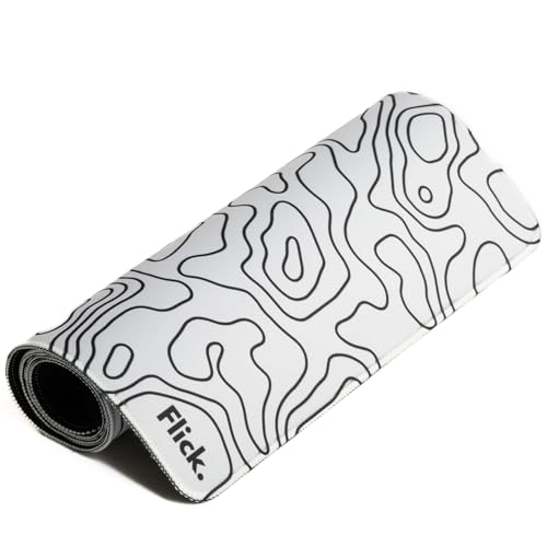 Flick. - قاعدة ماوس كبيرة للالعاب من فليك بحواف مخيطة - مقاومة للماء - مقاس 700 × 300 ملم - مطاطية مضادة للانزلاق - سطح قماشي - طبوغرافية بيضاء البوليستر
