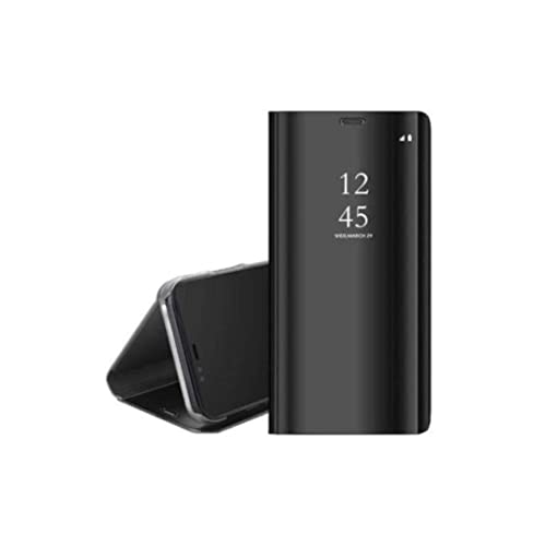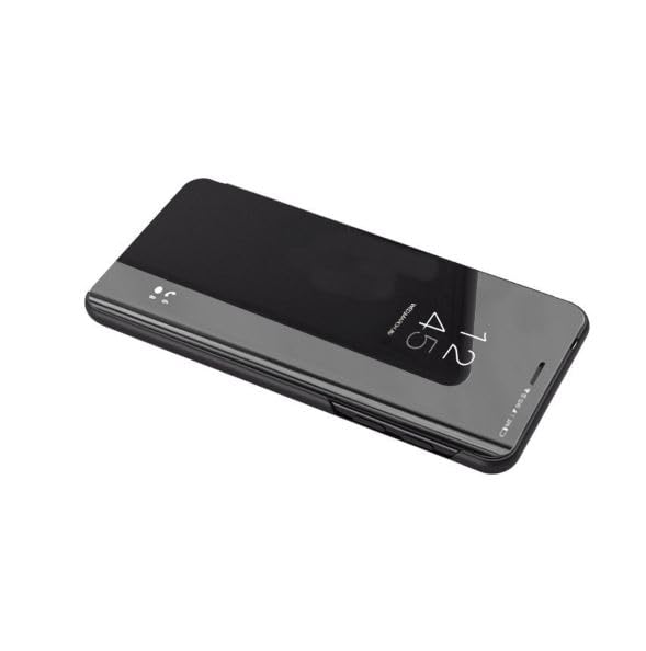 Generic - جراب حماية كلير فيو قابل للطي بدون مستشعر لموبايل ريلمي 6 بلون اسود، سيليكون