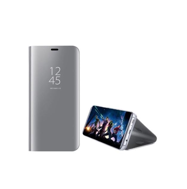 Generic - جراب فليب شفاف بحماية كاملة بدون مستشعر لموبايل سامسونج جالاكسي A14 الجيل الرابع 4G - فضي، بلاستيك