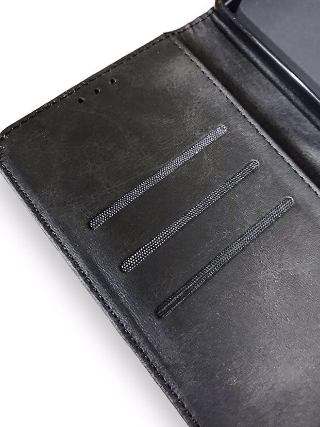 Generic - جراب موبايل جلد قابل للطي مع فتحة للبطاقات لموبايل هواوي Y9 (2019) - أسود حجري، محفظة