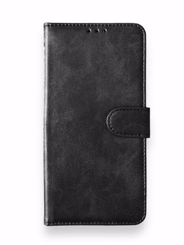 Generic - جراب موبايل جلد قابل للطي مع فتحة للبطاقات لموبايل سامسونج جالاكسي A14 - اسود حجري، محفظة