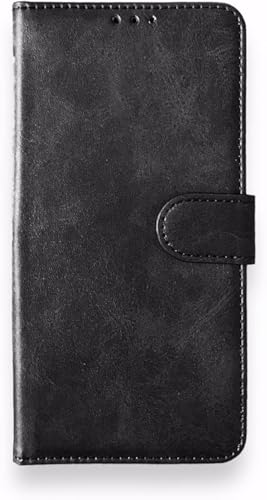 Generic - جراب موبايل جلد قابل للطي مع فتحة للبطاقات لموبايل سامسونج جالاكسي A24 - اسود حجري، محفظة