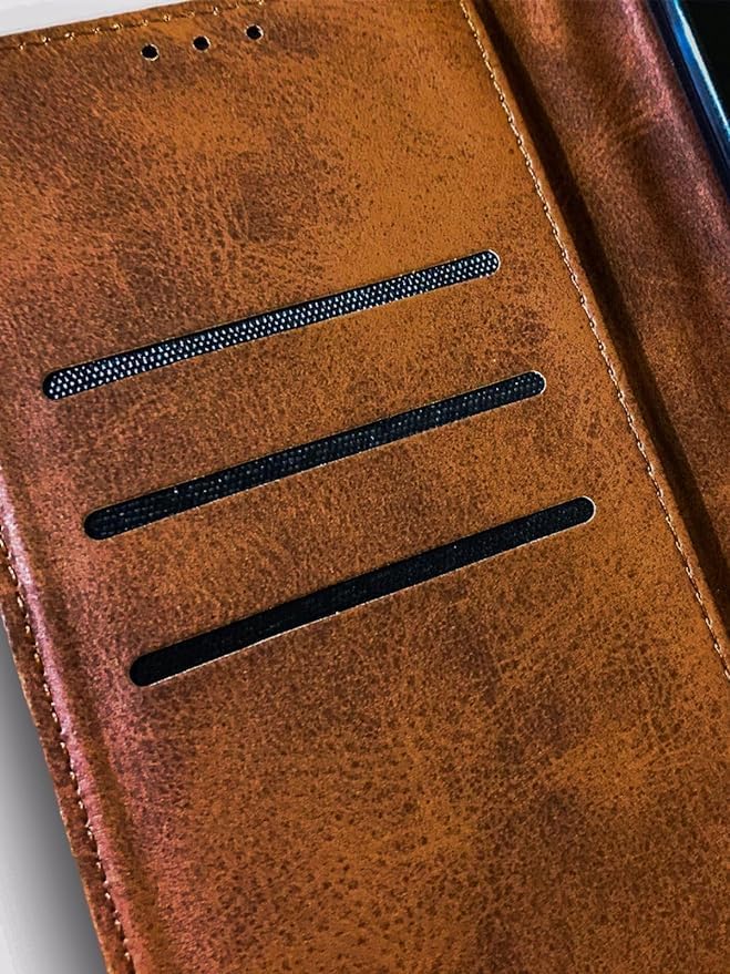 Generic - جراب موبايل جلد قابل للطي مع فتحة للبطاقات لموبايل سامسونج جالاكسي A34 شبكة الجيل الخامس 5G - بني حجري، محفظة
