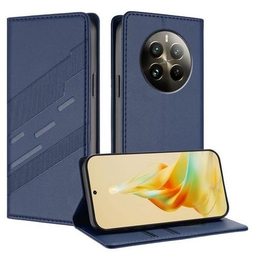 Generic - جراب حماية فيليب قابل للطي من الجلد الصناعي مقاوم للصدمات و مزود بحماية للكاميرا مع حامل بطاقات وكروت متوافق مع هاتف ريلمي 12 برو & ريلمي 12 برو بلس (dark blue)