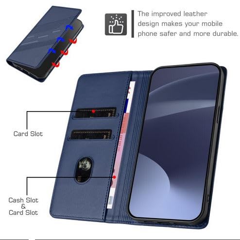 Generic - جراب حماية فيليب قابل للطي من الجلد الصناعي مقاوم للصدمات و مزود بحماية للكاميرا مع حامل بطاقات وكروت متوافق مع هاتف ريلمي سي 67 / realme c67 4g cover (dark blue)