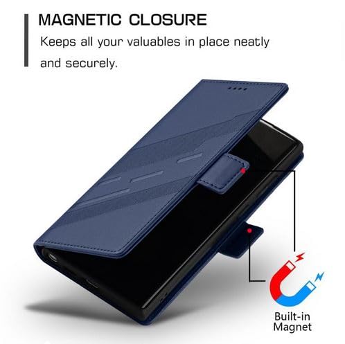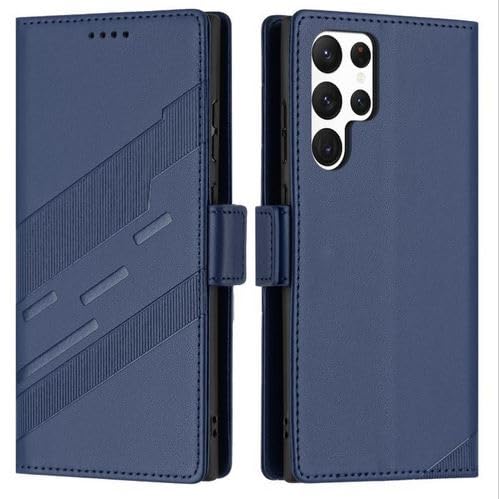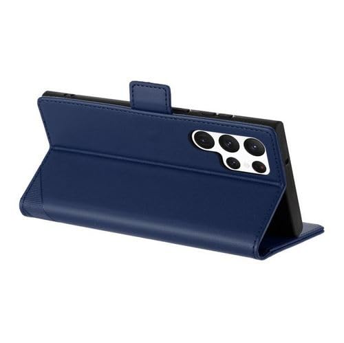 Generic - جراب حماية فيليب قابل للطي من الجلد الصناعي مقاوم للصدمات و مزود بحماية خاصة للكاميرا مع حامل بطاقات وكروت متوافق مع هاتف سامسونج اس 23 الترا / samsung s23 ultra cover (dark blue)
