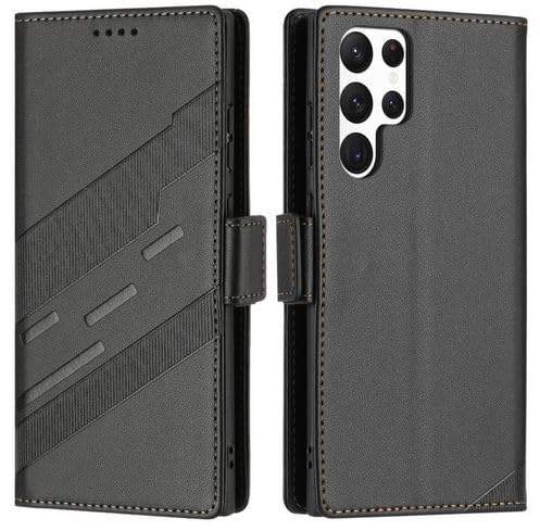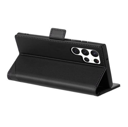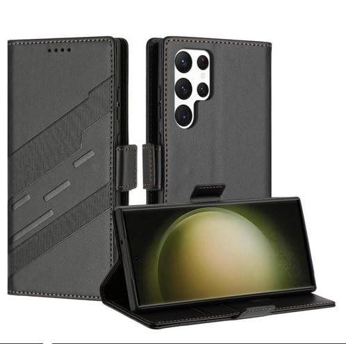 Generic - جراب حماية فيليب قابل للطي من الجلد الصناعي مقاوم للصدمات و مزود بحماية خاصة للكاميرا مع حامل بطاقات وكروت متوافق مع هاتف سامسونج اس 23 الترا / samsung s23 ultra cover (black)
