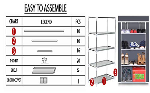 FLIPZON - جزامة من 4 طبقات من فليبزون، رف تخزين متعدد الأغراض مع غطاء بسوستة مقاوم للغبار، رف تخزين واسع متعدد الاستخدامات من قماش غير منسوج للأحذية والألعاب والملابس (4 أرفف) (أسود) بلاستيك غير منسوج