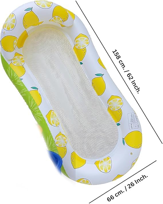 Generic - مرتبة ارجوحة عائمة مع شبكة، سرير مائي محمول قابل للنفخ، مرتبة قارب ليمون صيفية للبالغين للشاطئ وحمام السباحة البحري