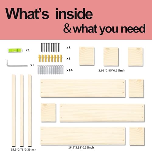 - [سهل التركيب] - سهل التركيب في دقائق باستخدام دليل التركيب. بالإضافة إلى ذلك، يمكن أن تحمل أرفف الحائط الخاصة بنا وزن يصل إلى 20 باوند عند تثبيتها بإحكام على الحائط.