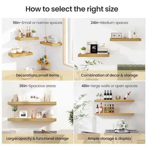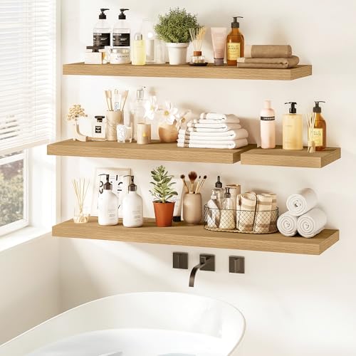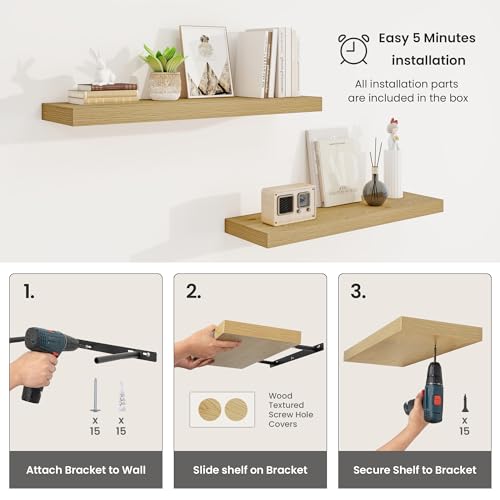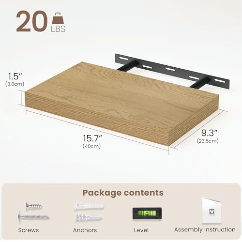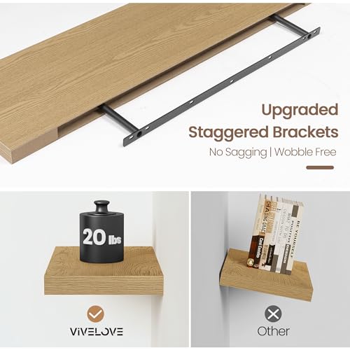 Vivelove - ارفف عائمة للحائط، ارفف 16 عرض × 9.3 عمق مع دعامات غير مرئية، مجموعة من قطعتين، من خشب البلوط، رف تخزين اكثر عمقا وسمكا يثبت على الحائط لغرفة المعيشة والمطبخ والمزرعة
