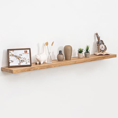 Fun Memories - ارفف عائمة للحائط، رف عائم من خشب الدردار الصلب بحافة مسطحة 55 انش، ارفف عرض مثبتة على الحائط مع دعامة معدنية غير مرئية شديدة التحمل، رف عائم لغرفة المعيشة والمطبخ، طبيعي