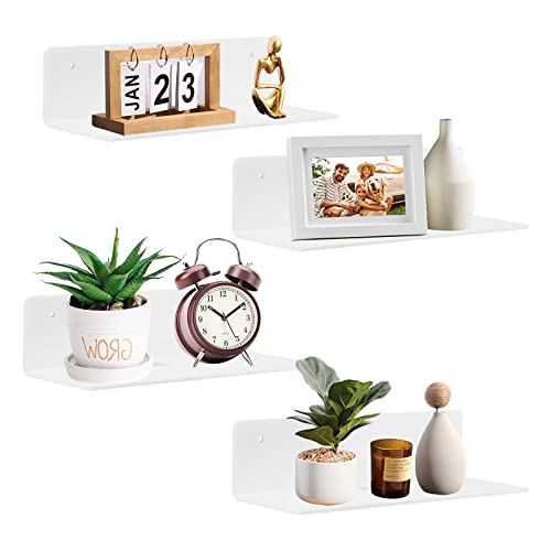 luium - ارفف عائمة للحائط - رف حائط اكريليك صغير 9 انش لشخصية فانكو بوب النباتات مجموعة من 4 عرض لاصقة تثبت على الحائط لغرفة النوم والحمام وغرفة الالعاب المعيشة والمكتب - ابيض