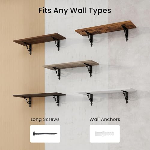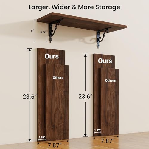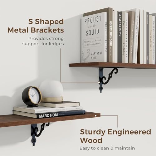 - أرفف عائمة مصممة جيدًا: أرفف عائمة عميقة ريفية مصنوعة من لوح حبيبي عالي الجودة ودعامات متينة. تم تصميم الدعامات المعدنية الكلاسيكية على شكل حرف S لمنع الترهل وضمان ثبات يدوم طويلاً. جميع الحواف مصقولة بعناية للحصول على لمسة نهائية ناعمة