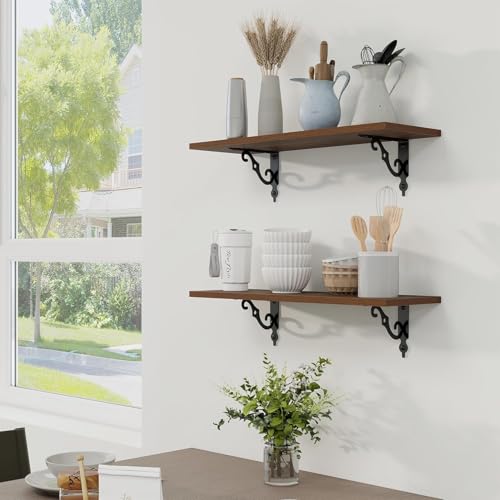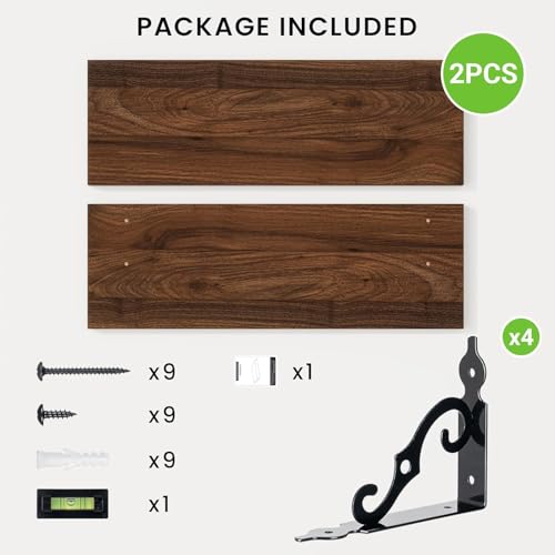 Generic - ارفف عائمة لديكور الحائط، ارفف حائط مقاس 24 انش مجموعة من قطعتين، ارفف عائمة 24 عرض × 8 عمق مثبتة على الحائط مع دعامات معدنية، ارفف خشبية ريفية لغرفة المعيشة وغرفة النوم والمطبخ، خشب الجوز