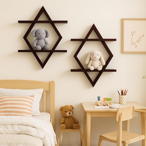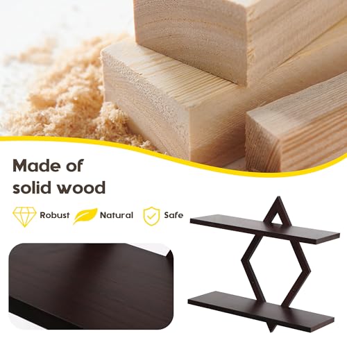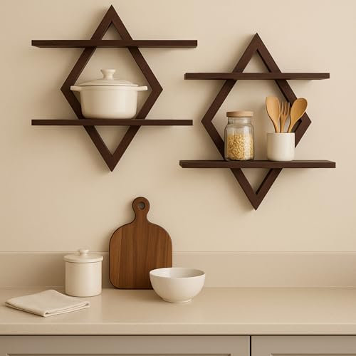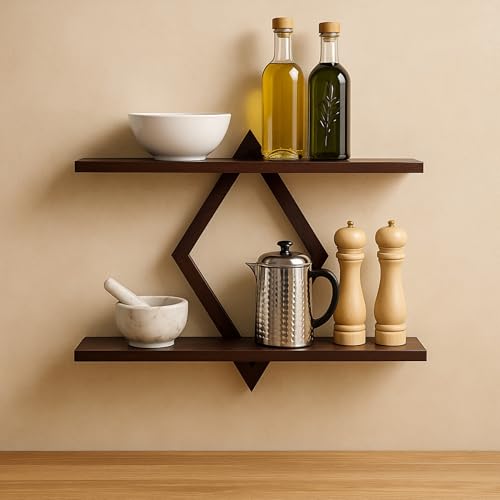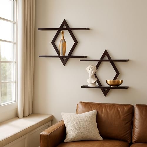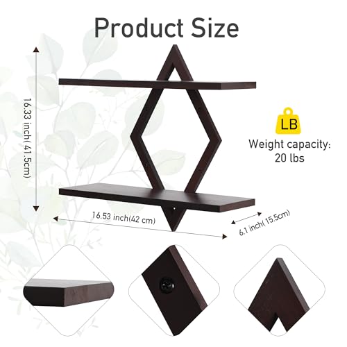 PHOENANCEE - ارفف عائمة للحائط، رف حائط مزخرف، رف معلق من طبقتين لتخزين النباتات، حامل عرض وتخزين النباتات، ديكور داخلي لغرفة المعيشة والمنزل والمكتب والحمام وغرفة النوم، خشب صلب، على شكل ماسي، عبوتان، خشب الجوز