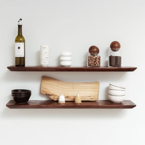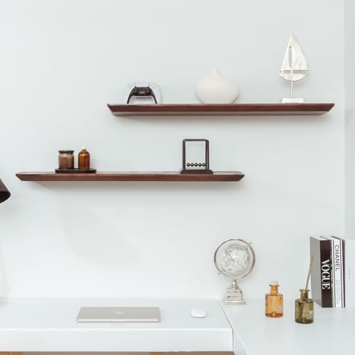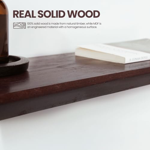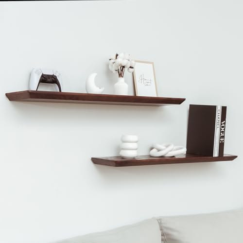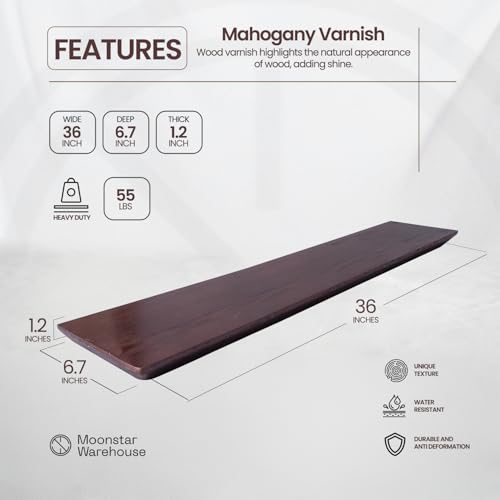 Moon Star Warehouse - ارفف عائمة للحائط - رف حائط من خشب الصنوبر الصلب - ارفف حمام - ارفف حائط لغرفة النوم وغرفة المعيشة - رف عائم للارفف المثبتة على الحائط - 36 × 6.7 × 1.2 انش - مجموعة من قطعتين (لون ماهوجني)