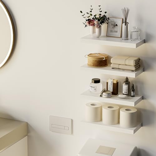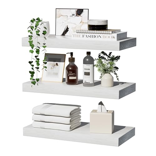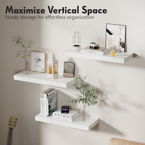 Proarea - رفوف عائمة للتخزين على الحائط، مصنوعة من خشب ريفي بتصميم حديث للتثبيت على الحائط، تستخدم كمنظم وعرض للديكور في الحمام وغرفة النوم وغرفة المعيشة والمطبخ، مقاس 40 سم، طقم من 3 قطع، لون أبيض