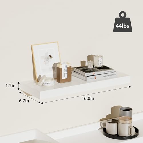 - حجم كبير للتخزين: بطول 16 انش لكل رف، توفر هذه الأرفف العائمة مساحة واسعة لتخزين وعرض العناصر، تجمع بين العملية والديكور الأنيق.