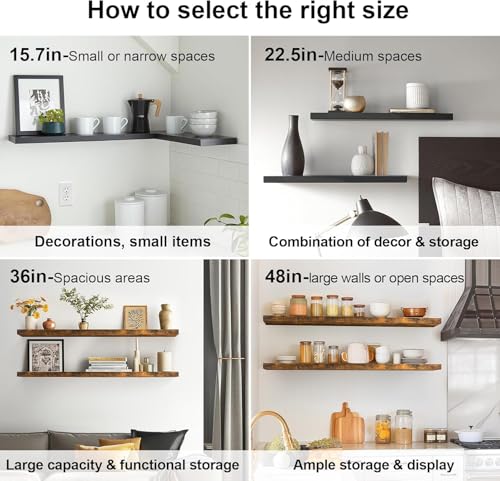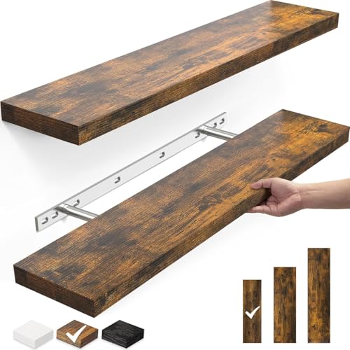 - جودة عالية: مقاس 39.9 سم طول × 15 سم عرض × 3.8 سم ارتفاع. أرفف الحائط بسمك 3.8 سم ثابتة بحوامل حديد مزدوجة الأنابيب الصلبة، ثابتة مع حمل رائع يصل إلى 10 كجم لكل رف. إنه مكان مثالي لعرض الصور المحبوبة والجوائز والديكورات الأخرى الرقيقة