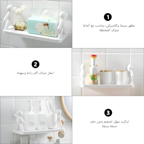 - رف مثبت على الحائط مصنوع من بولي بروبيلين متين وعالي الجودة، يمنحك تنظيمًا عمليًا وجماليًا في المطبخ أو الحمام أو غرفة المعيشة دون أي تأثير على ديكور الحائط.