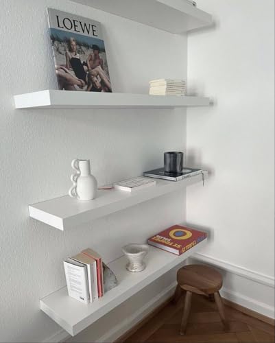 Generic - رفوف حائط عائمة 3 قطع، خشب MDF أبيض، 60 سم و 50 سم و 40 سم، عرض 15 سم، للديكور المنزلي والمكتب