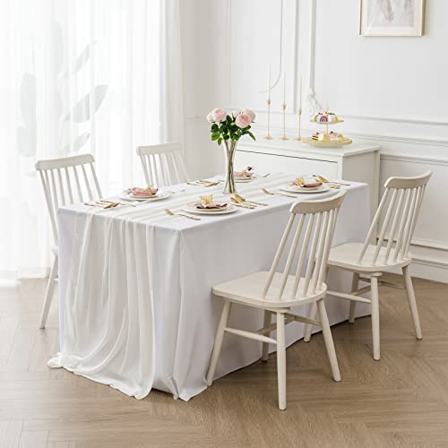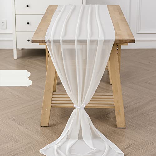 flohar - مفرش طاولة من الشيفون بطول 3 م من فلوهار، 74 سم × 3 م، مفرش طاولة رومانسي شفاف لحفلات الزفاف وأعياد الميلاد وحفلات ما قبل الزفاف والديكور الخارجي - عاجي