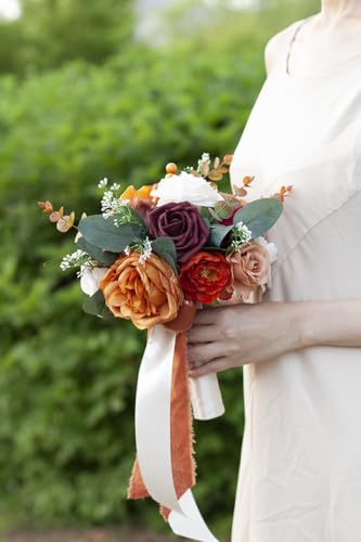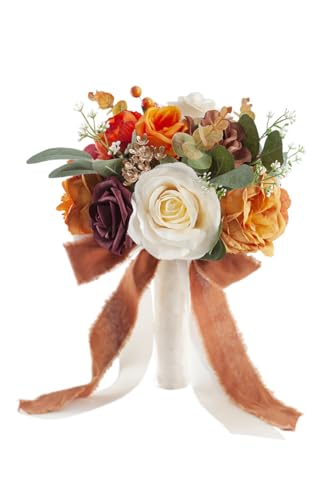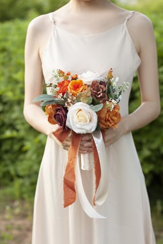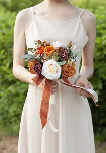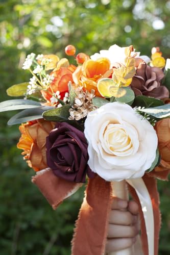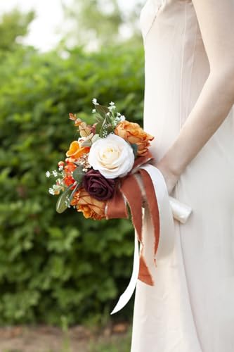 Floinla - باقات زفاف لوصيفات العروس من فلوينلا، باقات زهور صناعية مقاس 17.78 سم لحفلات الزفاف والحفلات الراقصة والمراسم وحفلات العودة للوطن وديكور الذكرى السنوية