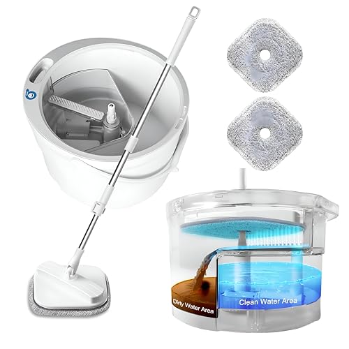 Generic - حل العناية بالأرضيات - شرشوبة دوارة 2 في 1 مع دلو ذاتي التوزيع ووسادات من المايكروفايبر لتنظيف الأرضيات بدون جهد وتجفيف سريع