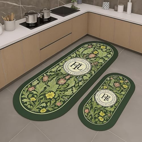 Generic - سجادة مستطيلة مصنوعة من المطاط بألوان أزرق فاتح ووردي وأخضر، سجادة صغيرة بتصميم مطاط كومبريسد. ماصة ومضادة للانزلاق، طقم من قطعتين مقاس 60×40 سم و 120×40 سم