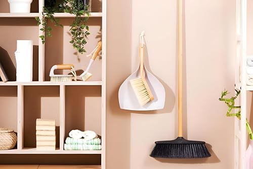 Generic - مجرفة مثبتة على الارض - مجموعة متينة وصديقة للبيئة مع مكونات من الخيزران، 34 × 25 × 7 سم، الوان بني وابيض، مصممة للتركيب على الارض الثابتة وسهولة التخزين.