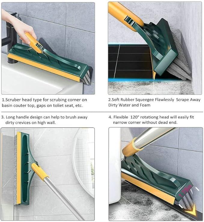 - تصميم متعدد الاستخدامات: فرشاة أرضية 2 في 1 مع ممسحة ورأس فرشاة دوارة مثلثة بزاوية 120 درجة لتنظيف فعال للأسطح المختلفة بما في ذلك الزجاج والبلاستيك والستانلس ستيل