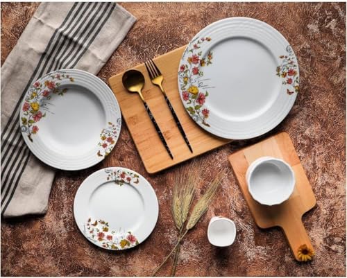 Flora - طقم عشاء فيولا من البورسلين بتصميم تركي كامل مطبوع بنمط زهور من فلورا، 25 قطعة