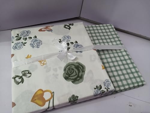 Generic - طقم غطاء لحاف مشجر بنقشة ورود وكاروهات، قطن عامرية، مقاس كبير 220×240 سم، لون أخضر منت، مع خداديتين وسوستة كبيرة، 3 قطع