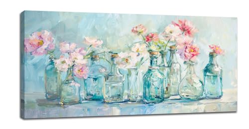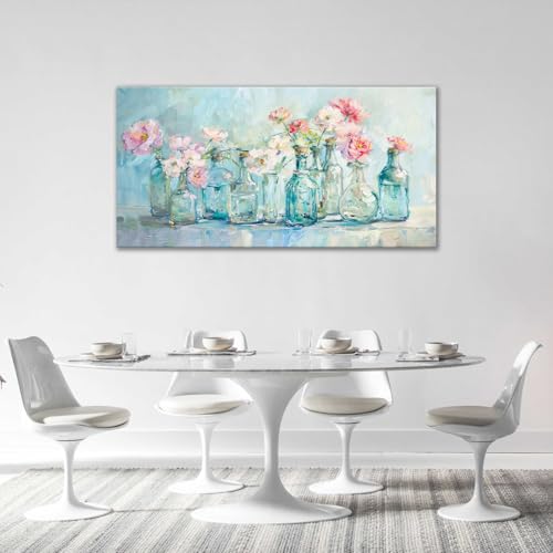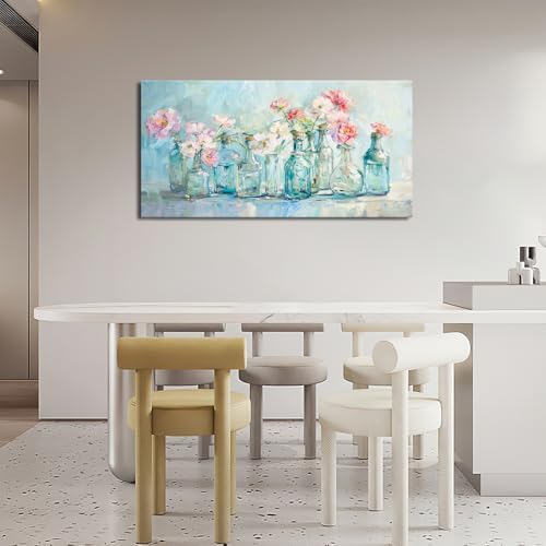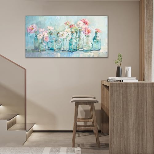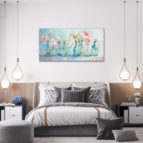 yowecso - لوحة فنية جدارية كبيرة من القماش بنمط زهور لغرفة المعيشة في مزهرية مطبوعة باطار صور لوحة جمالية فنية للمكتب وديكور المنزل لغرفة النوم وغرفة الطعام 60 انش × 30 انش