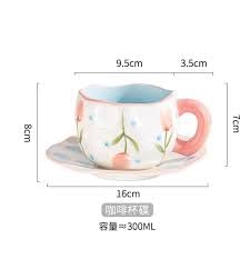 - السعة: كوب شاي سيراميك كبير 300 مل مثالي لمشروباتك الساخنة المفضلة، مع صحن مطابق أنيق متضمن